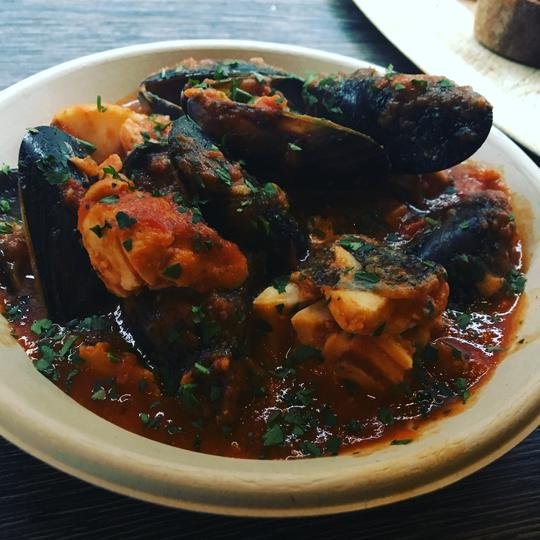 Hake, salmon, prawns,mussels and squid in a slow-cooked red morrón pepper, tomato & olive sauce. Served with a hunk of sourdough bread